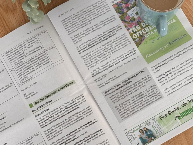 Wir als CDU Schönaich setzen uns gemeinsam für die Interessen und Anliegen der Bürgerinnen und Bürger in Schönaich ein und wollen mit diesen zusammen die Zukunft unserer Gemeinde gestalten.
