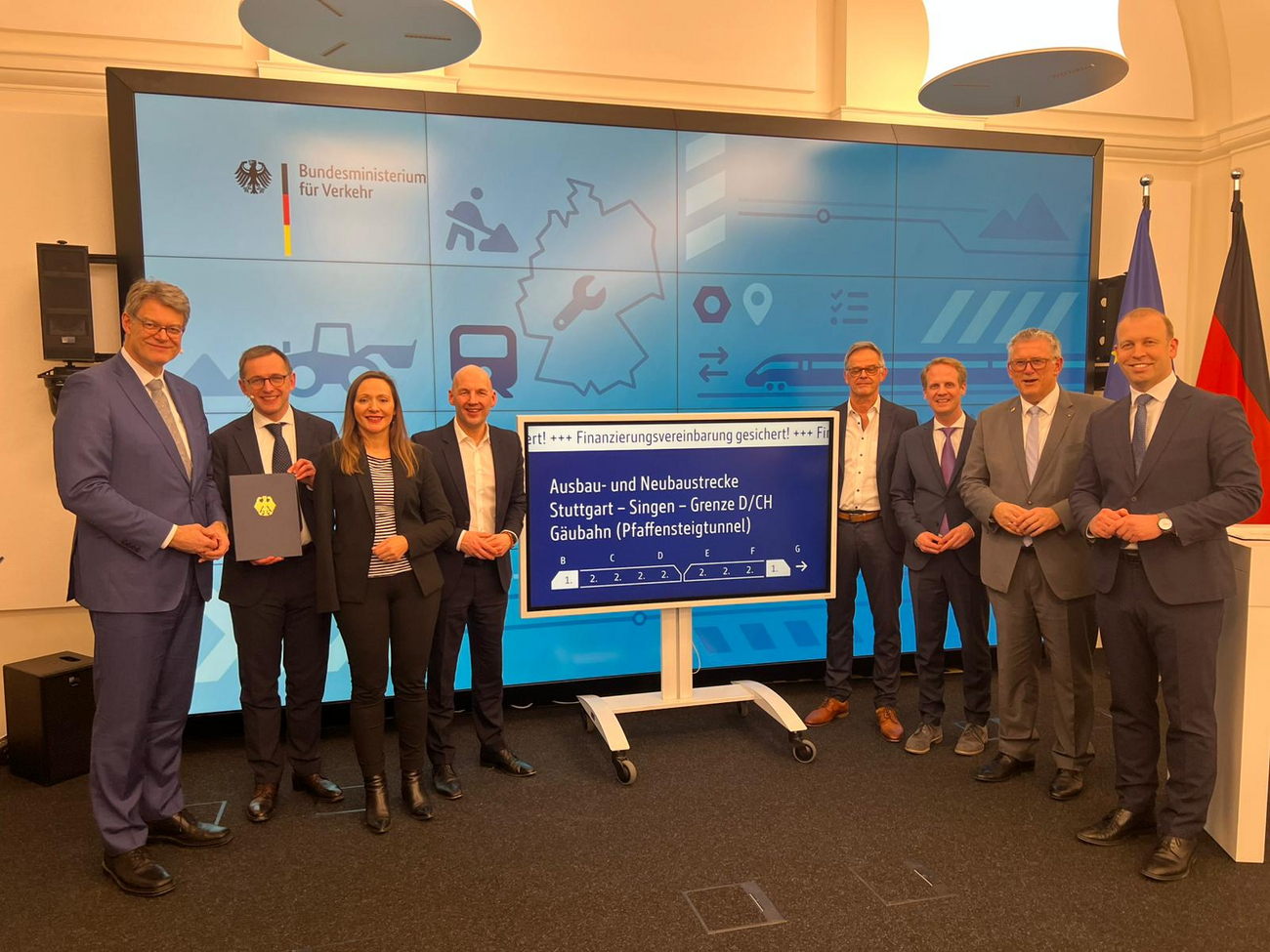 Der Pfaffensteigtunnel ist ein zentraler Baustein im Ausbau der internationalen Bahnverbindung Stuttgart - Singen - Zürich. Der Tunnel wird den Manfred Rommel Flughafen Stuttgart und die Messe Stuttgart künftig direkt mit der Gäubahn bei Böblingen verbinden und ist ein entscheidender Beitrag zur Zukunft des Schienenverkehrs im Südwesten. Der etwa elf Kilometer lange Tunnel soll 2032 in Betrieb gehen